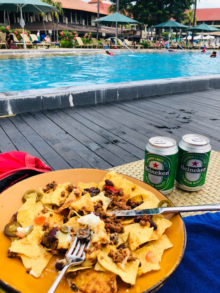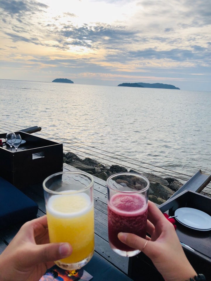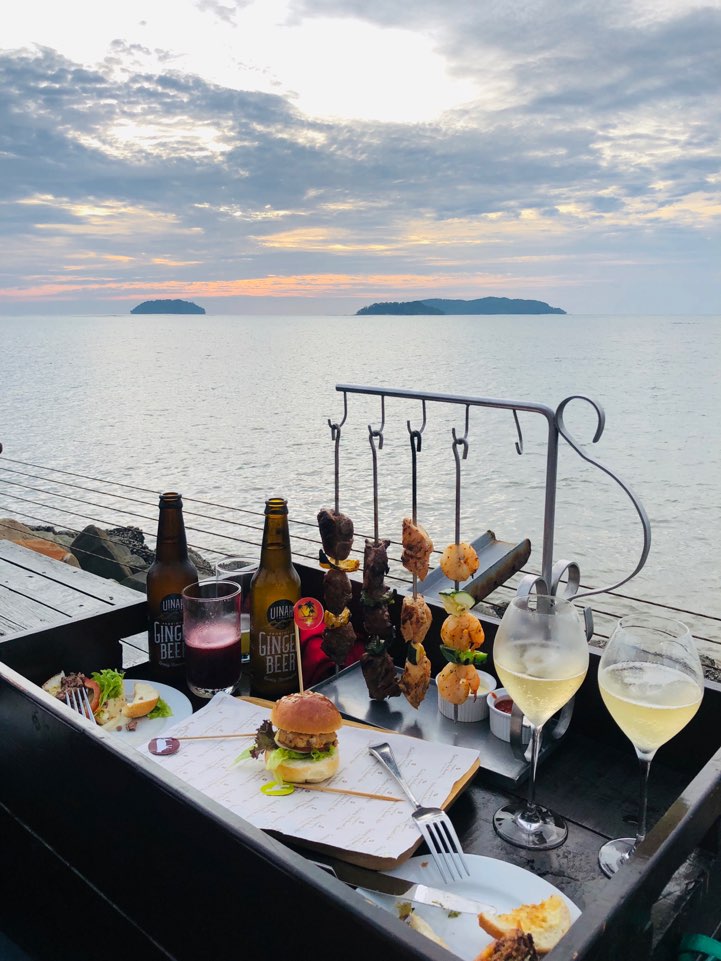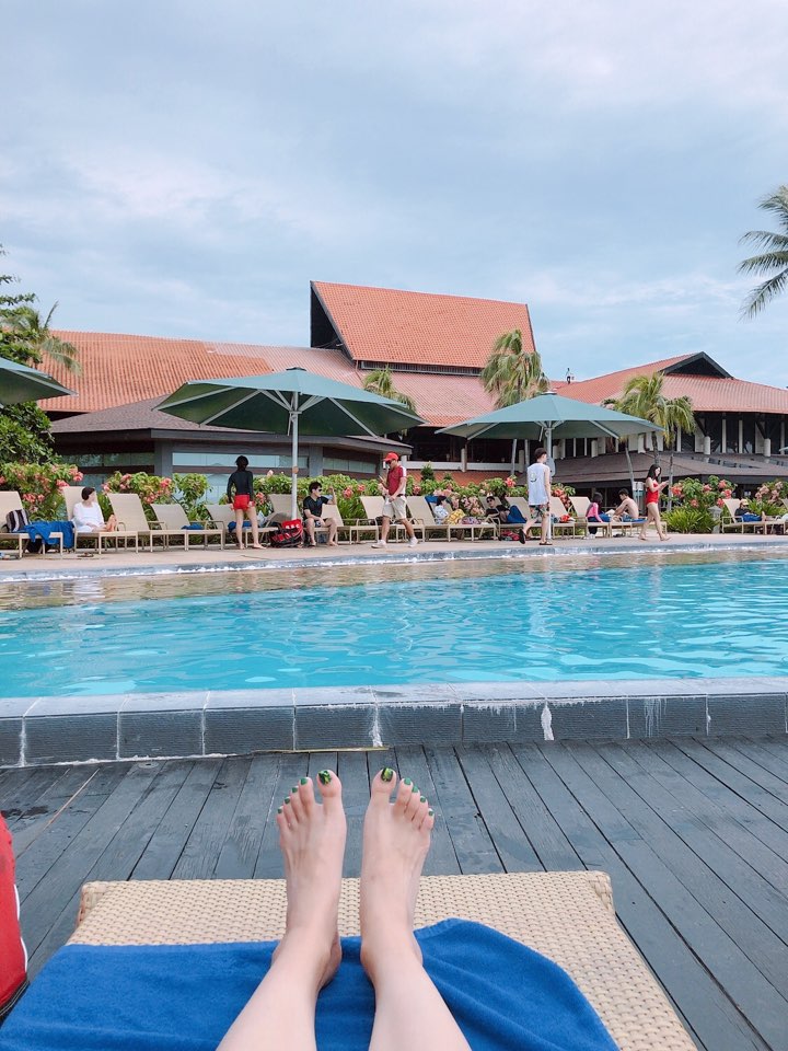 아침에 예약을 하고 나왔다.. 선 라운저(sun lounger) 자리(인당 228링깃)