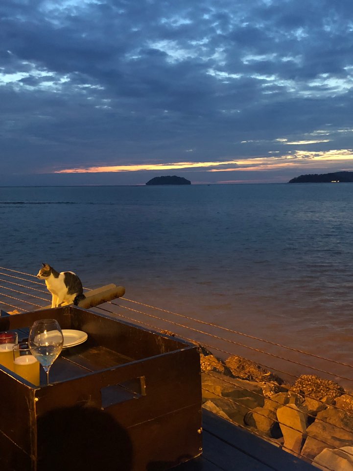 선셋 보는 중간에 먹을거 훔치러온 귀여운 고양이 ><