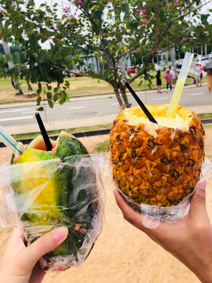 그냥 과일 자체를 통으로 썰어서 안을 믹서기로 갈아줬다.. 한국에서는 볼 수없는 쿨함.