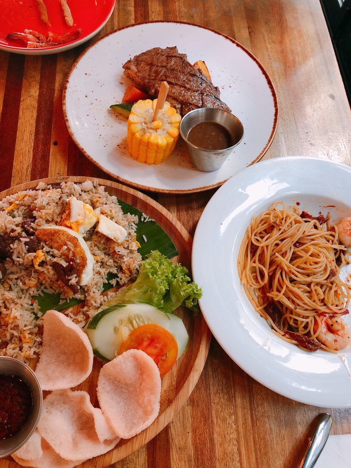 쇼핑몰안에 있는 루시스키친에서 스테이크랑 볶음밥 파스타를 먹었다. 볶음밥이 무척 맛있었음..
